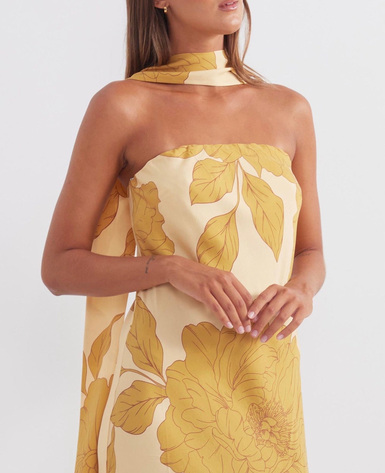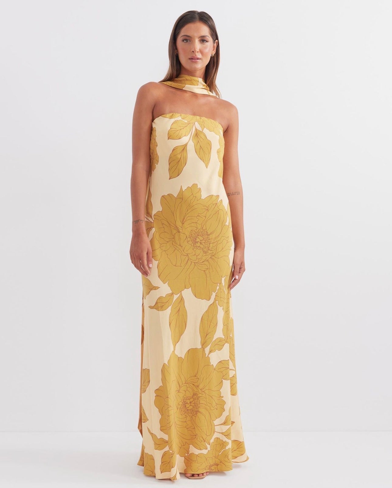 The Lucent Strapless Maxi by PASDUCHAS is a sleek, statement silhouette crafted from lustrous satin with an exclusive floral print. Cut on the bias for a fluid, flattering drape, the design features a strapless neckline secured with elastic for a comfortable fit. A removable scarf tie adds versatility, wear it elegantly at the neck or styled around the waist to define your shape. Falling to a full maxi-length hem and finished with an invisible centre-back zipper, this piece is perfect for modern event dressing.